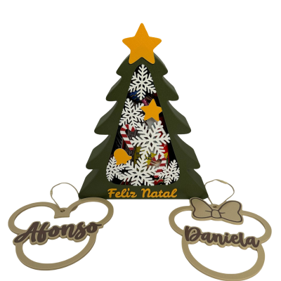 Decoração em forma de árvore natalícia, ideal para encher de doçura e alegria a época festiva. No interior encontram-se chocolates e chupas, protegidos por flocos de neve e pequenas estrelas que realçam o encanto do Natal. Uma peça perfeita para oferecer, decorar a mesa ou tornar qualquer espaço mais acolhedor nesta quadra. Para o seu Natal ficar mais completo junto seguem dois ornamentos de Natal personalizaveís.